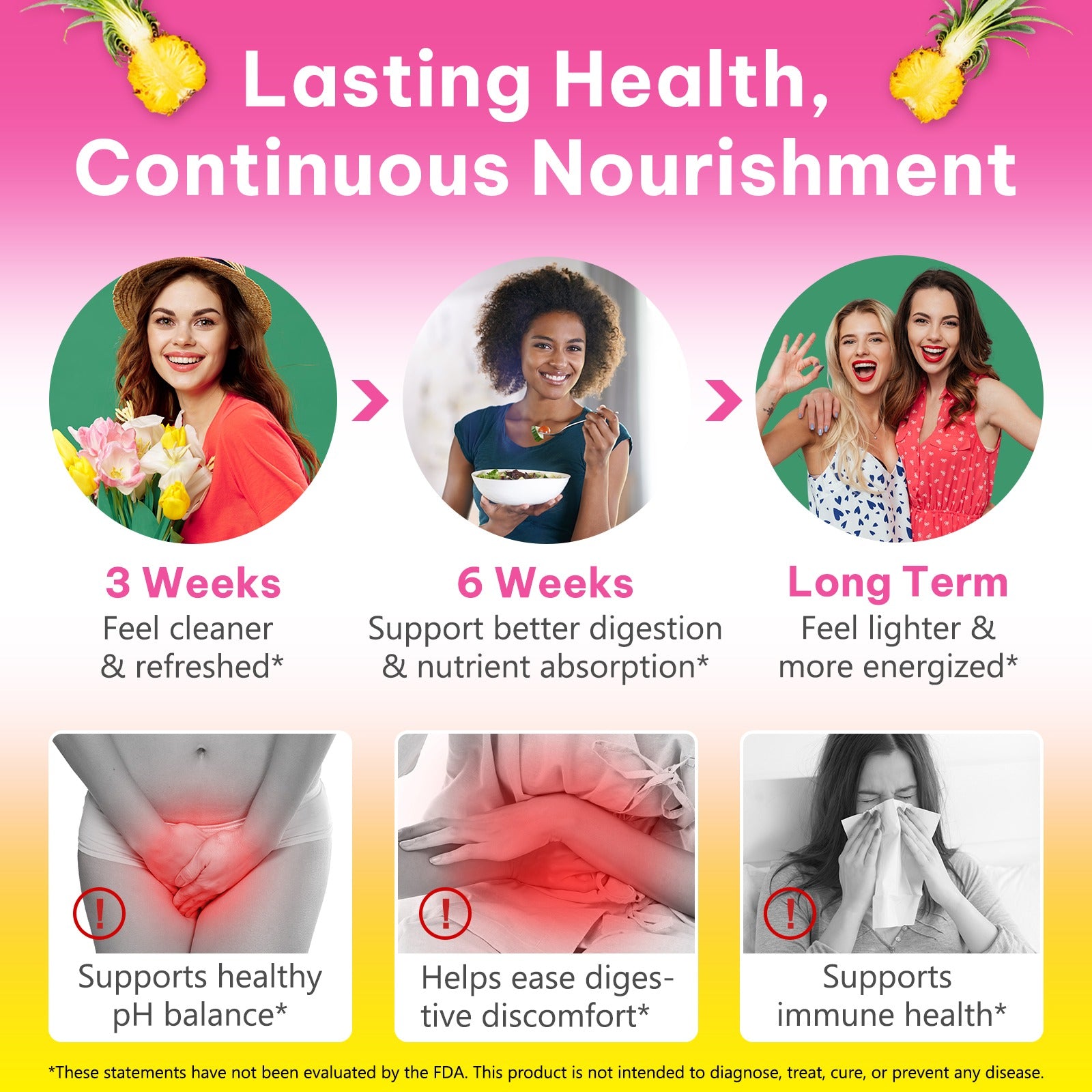 Formulated with natural fibers and botanicals that support gut balance and wellness.